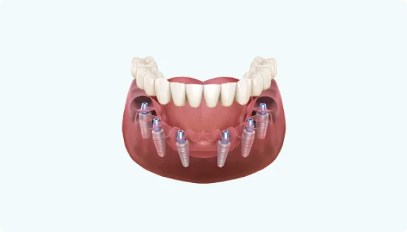 Если у вас отсутствуют практически все зубы или осталось всего несколько зубов, вы можете восстановить зубной ряд с помощью несъёмных методов протезирования ALL ON 6 и на 4-х имплантах